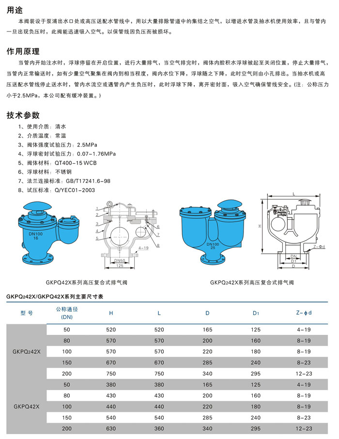GKPQ242X系列(liè)高壓複合式(shì)排氣閥