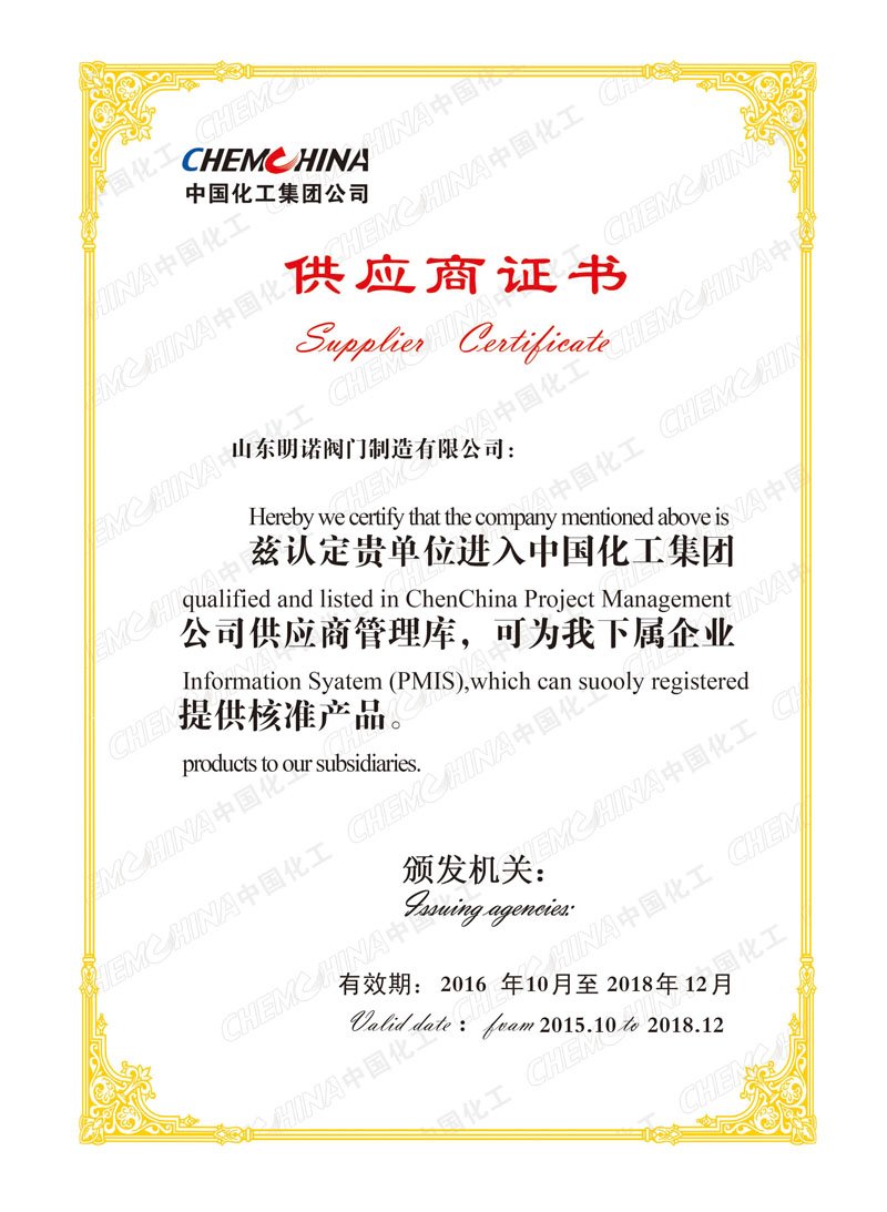中(zhong)國化工集團(tuán)供貨商證書(shu)