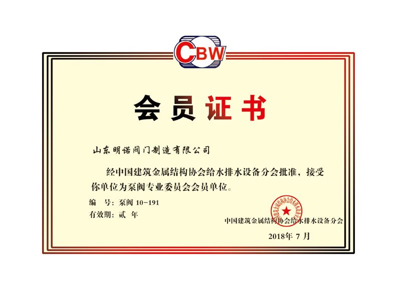 中國(guo)建築金屬結(jié)構協會會員(yuán)證書