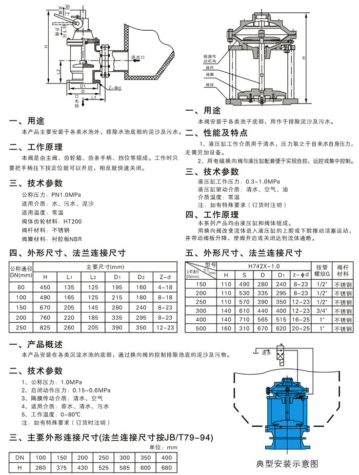 SD44X手動(dòng)快開排泥閥(fá)、H742X液動池底閥(fá)、JM742X型隔膜式池(chí)底排泥